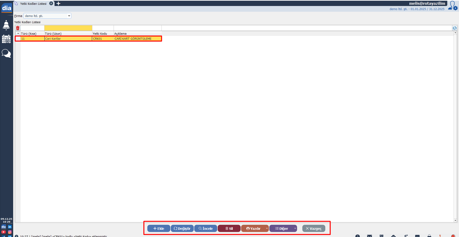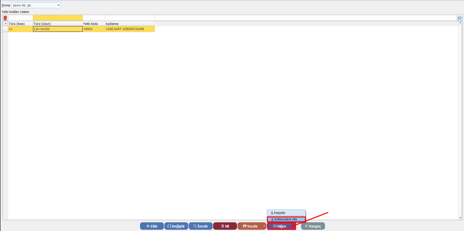 ✅ Yöntem 1: Yetki Kodları Listesinden Atama