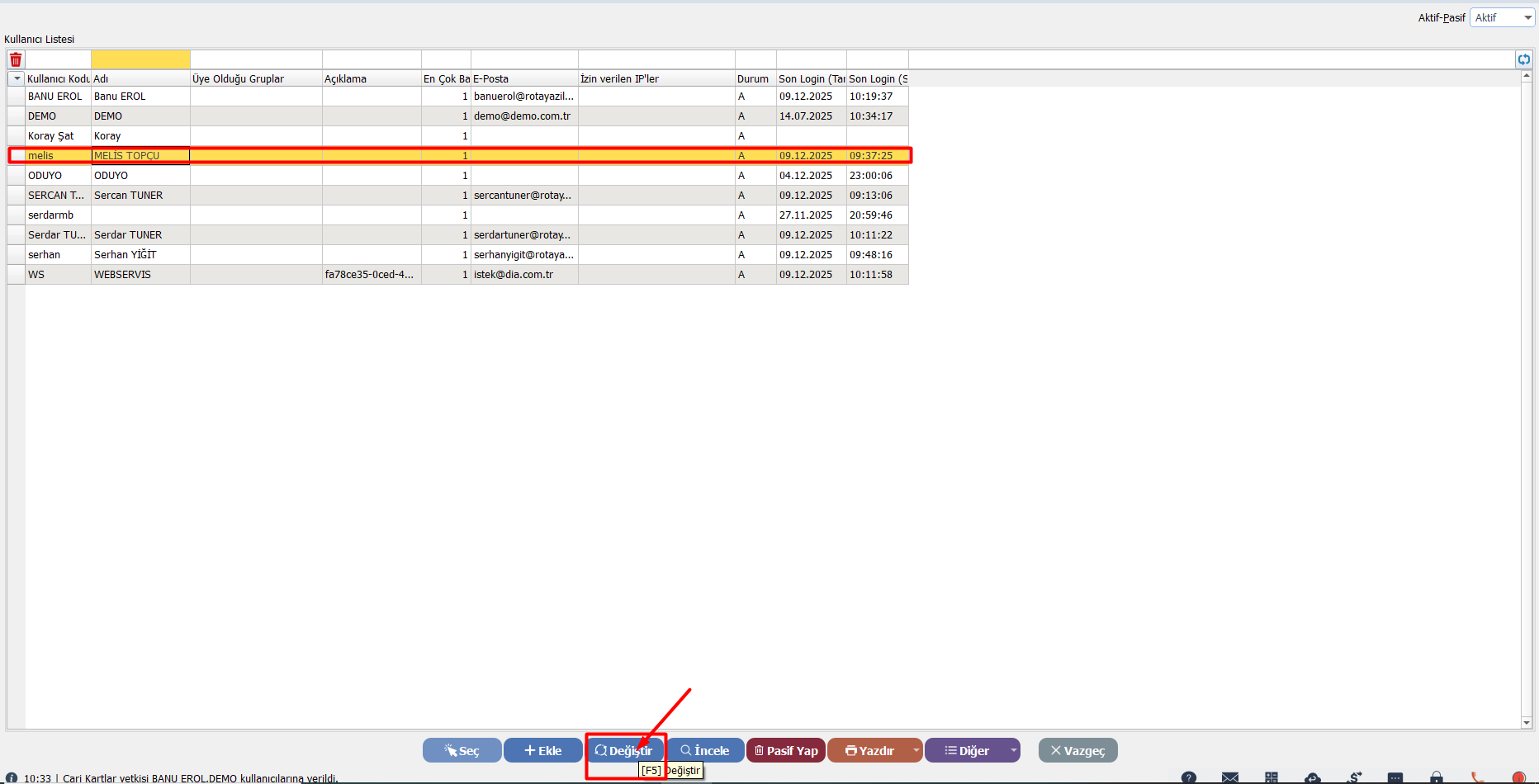💡 Özet: Veri bütünlüğü için, yönetici (admin) dışındaki personellerde bu yetkinin kapalı olması önerilir.