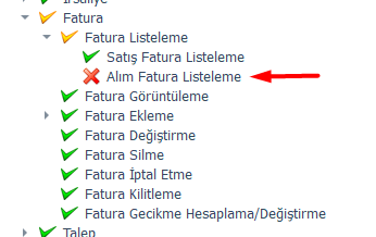 1. Tam Kısıtlama: Alım Faturaları Yetkisi Kapalıysa