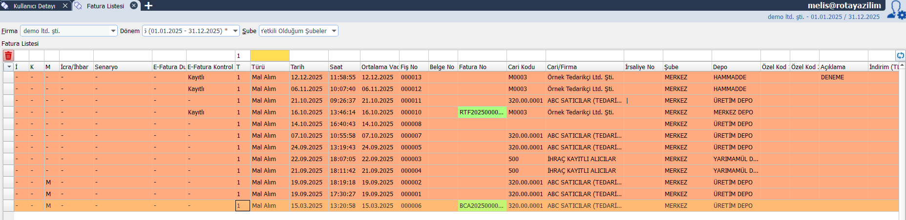 Sonuç: Kullanıcı fatura listesindeki “Alım Faturaları” başlığını göremez.