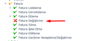Sonuç: Kullanıcı faturayı görebilir, yetkisi varsa düzenleyebilir.