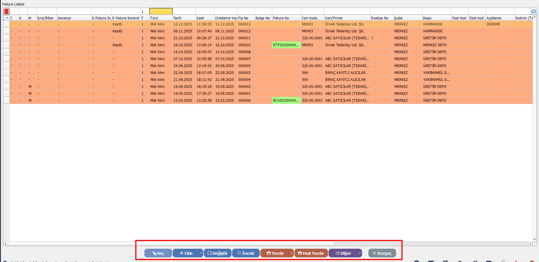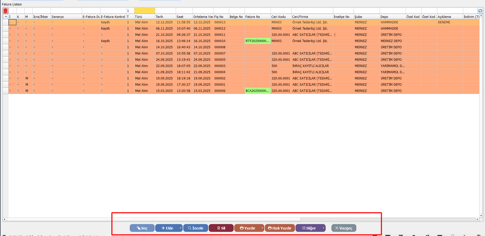 Sonuç: Kullanıcı mevcut alım faturalarını listede görür ve detaylarını (içeriğini) inceleyebilir.