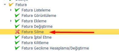 Eğer kullanıcı için bu menüye ait yetki tamamen kapatılırsa, sistem o kullanıcı için söz konusu modül yokmuş gibi davranır. Alım faturaları 1 kodludur yetkiler kapanınca 1 numaralı faturaları göremez