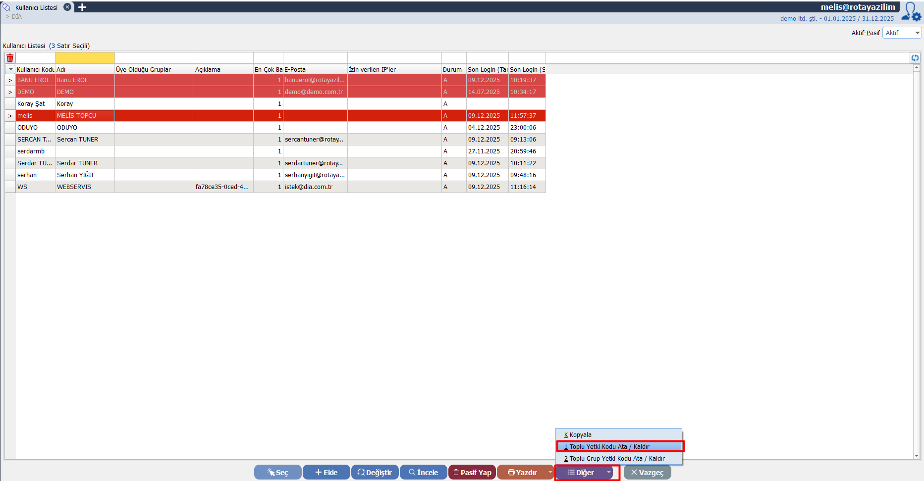 Bu rehberde, Dia yetki kodu oluşturma sürecini, kullanıcılara nasıl atandığını ve firma / modül bazlı yetkilendirmenin nasıl yapıldığını adım adım anlatıyoruz.